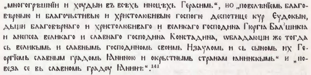 182. Принципно неправилно е да се обединяват тези произведения с предхождащото ги слово, както прави това Е. И. Дьомина (цит. съч., с. 73) въз основа на съвсем формални съображения. По съдържанието си двата патерични разказа нямат нищо общо със Словото за рождество Богородично. Не може да се приеме и твърдението ча Дьомина, че съставителите на сборниците не са ги разглеждали като самостоятелни творби. Макар и по външно оформление те да са присъединени към предшествувашото ги съчинение, съставителите на дамаскините ясно са съзнавали, че това са други произведения. Свидетелство е отделянето им с киноварни заглавия.