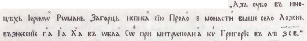 Преписвачът на миней-пролог (НБКМ, № 167) съобщава за себе си:
