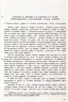 | 137, 104 | 3, 4 | 13—19, 21—23, 129, 26, 130, (96), 131, 98 27, 132, 133, 28—30, 134—136, 31, 33—46, 48—50, 52—60 | 63, 64 (72), 68—72, 73, 76—83, 85, 89, 90 (140), 91—96, 101, 103, 104—108, 87, 109, 110, (161—163), от диалозите на Григорий Двоеслов, от Житието на Йоан Милостиви, Пелагия блудница, от Житието на Андрей Юродиви, 111, 114, 223 (168), 115, 224, за Козмиани, 225, (179), За монахиня, избягала в пустинята, 226, (104), 117, 138, 118—121 | 123, 139—144, 124, 145—147, 149—152, 154, 156—171, Житие на Евпраксия, Житие на Нифон и др.