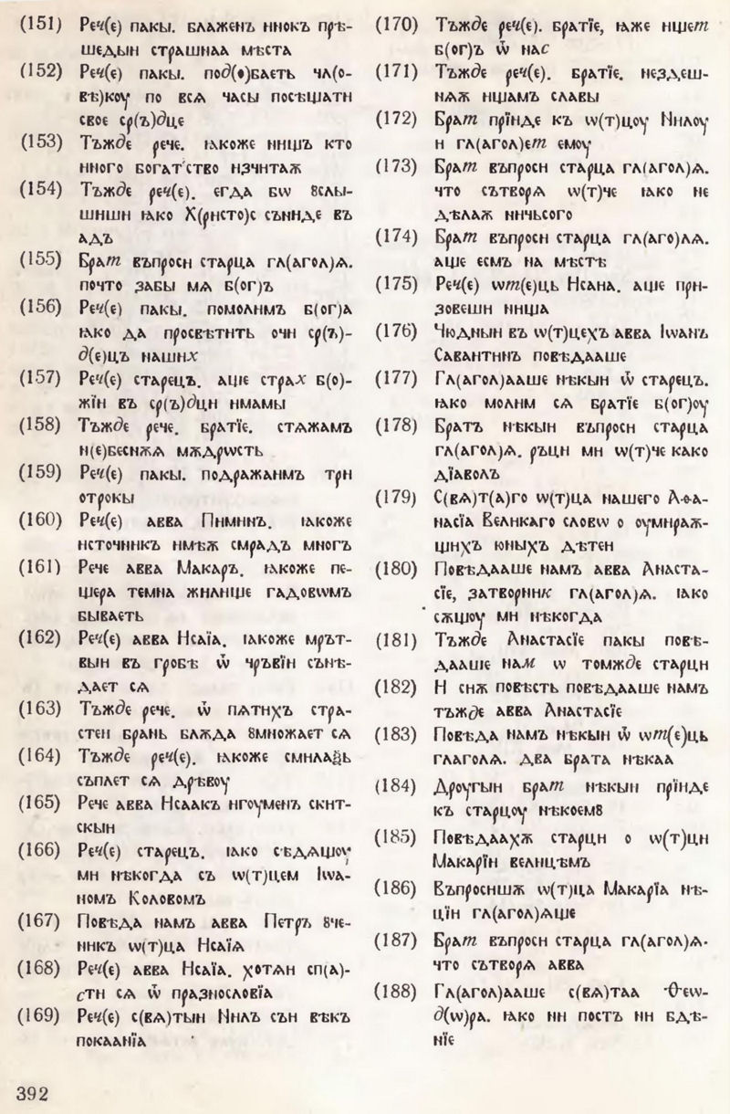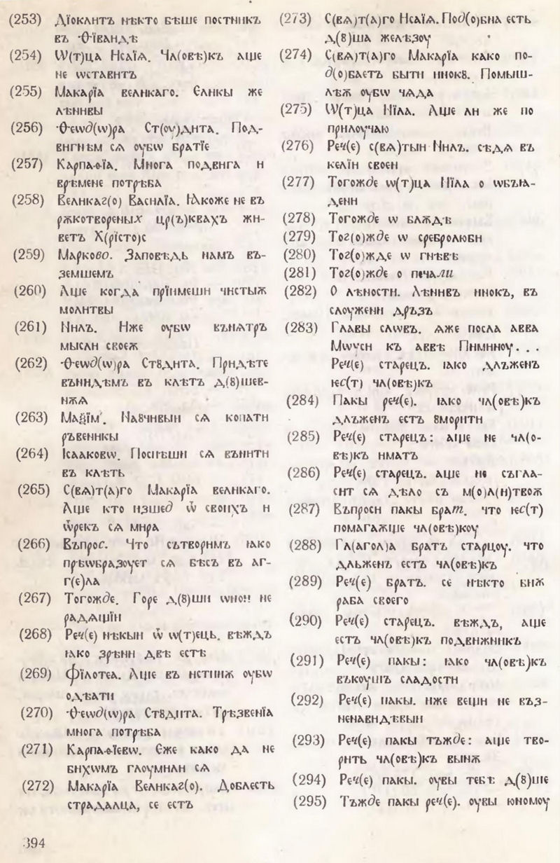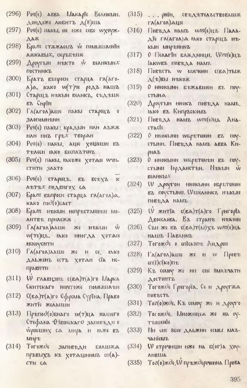 СЪПИСАНЇѦ Ѿ ПОȢЧЕНЇИ И Ѿ ПОВѢСТЇИ И Ѿ ЖИТЇИ ПРѢПОД(О)БНЫИХЪ И Б(О)ГОНОСНЫХЪ ѠТ(Е)ЦЪ НАШИХЪ