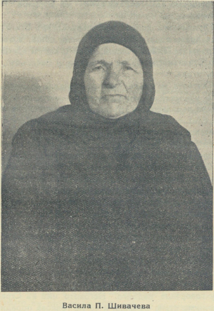Васила Панайотова Шивачева (Васильото) бѣ втората героиня на Бунаръ-Хисаръ. Тя бѣше бедна жена. Имаше едно малко момче, мой ученикъ, на когото давахъ книги по бедность. Майка му бѣ свободна и разговорлива. Поради туй нѣкои несправедливо я считаха неподходяща работница, неумѣеща да пази тайна. А тя бѣ всѣкога една и сѫща. И когато месѣше хлѣбъ, и