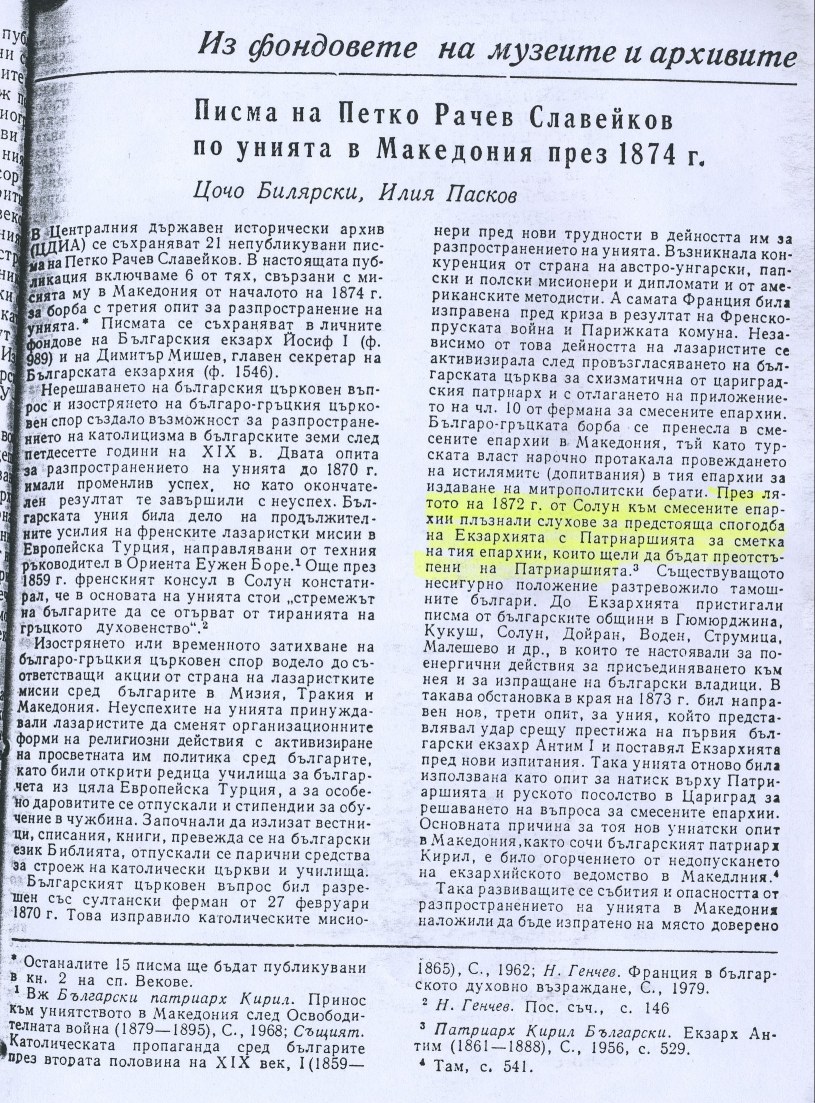 Писма на Петко Рачев Славейков по унията в Македония през 1874 г.