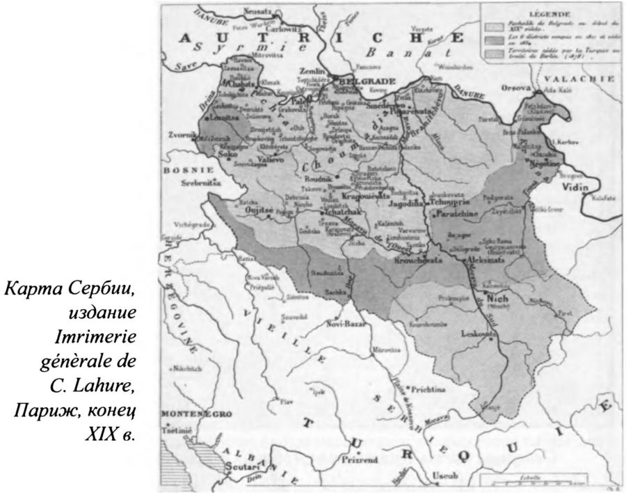 4. Карта Сербии, издание Imrimerie générale de С. Lahure, Париж, конец XIX в.