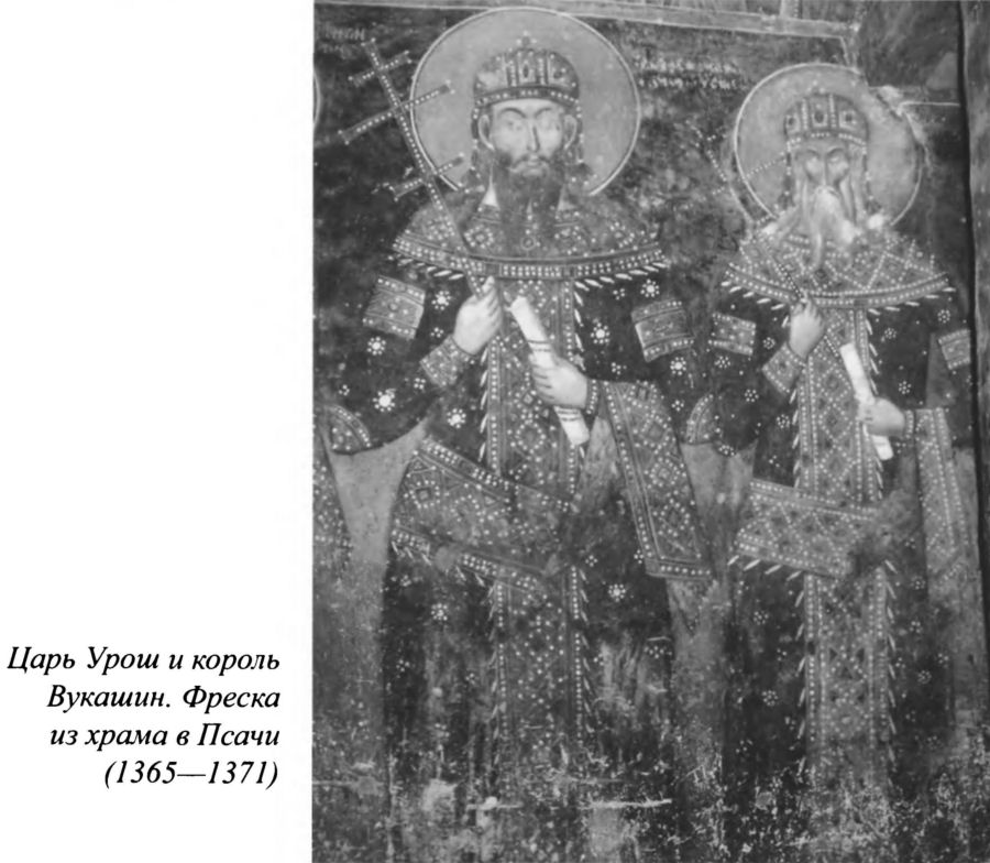 37. Царь Урош и король Вукашин. Фреска из храма в Псачи (1365—1371)