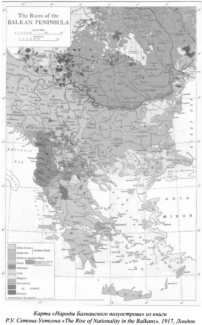 41. (The Races of the Balkan peninsula) Карта «Народы Балканского полуострова» из книги Р.У. Сетона-Уотсона «The Rise of Nationality in the Balkans», 1917, Лондон