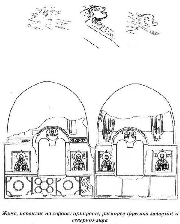 Жича, параклис на страну припрате, распоред фресака западног и северног зида