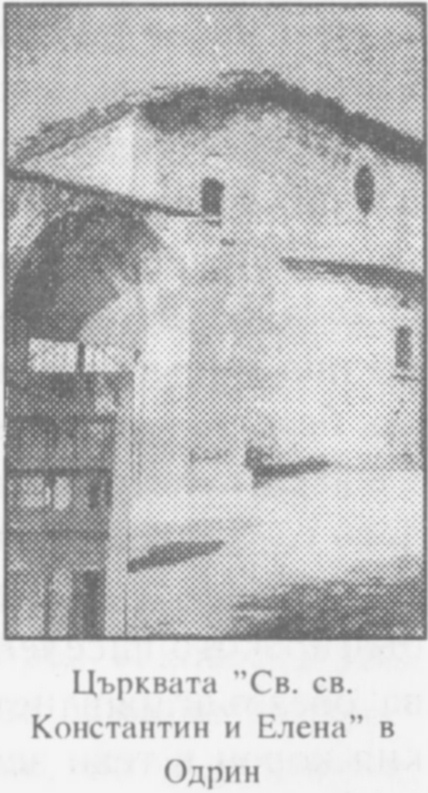 Изпълнени със законна гордост от безпримерния подвиг на българската армия, водена от изконната жажда за вярната кауза - свободата на Тракия, напускаме крепостта и се отправяме към една от българските светини в Одрин - черквата "Св. Св. Константин и Елена". Какъв контраст?! Каква поразителна гледка! Та тук няма черква?! Не зная дали има българско сърце, което да не проплаче от печалната истина, че това, което дедите ни са строили през вековете, ние не само не опазваме, но и рушим с