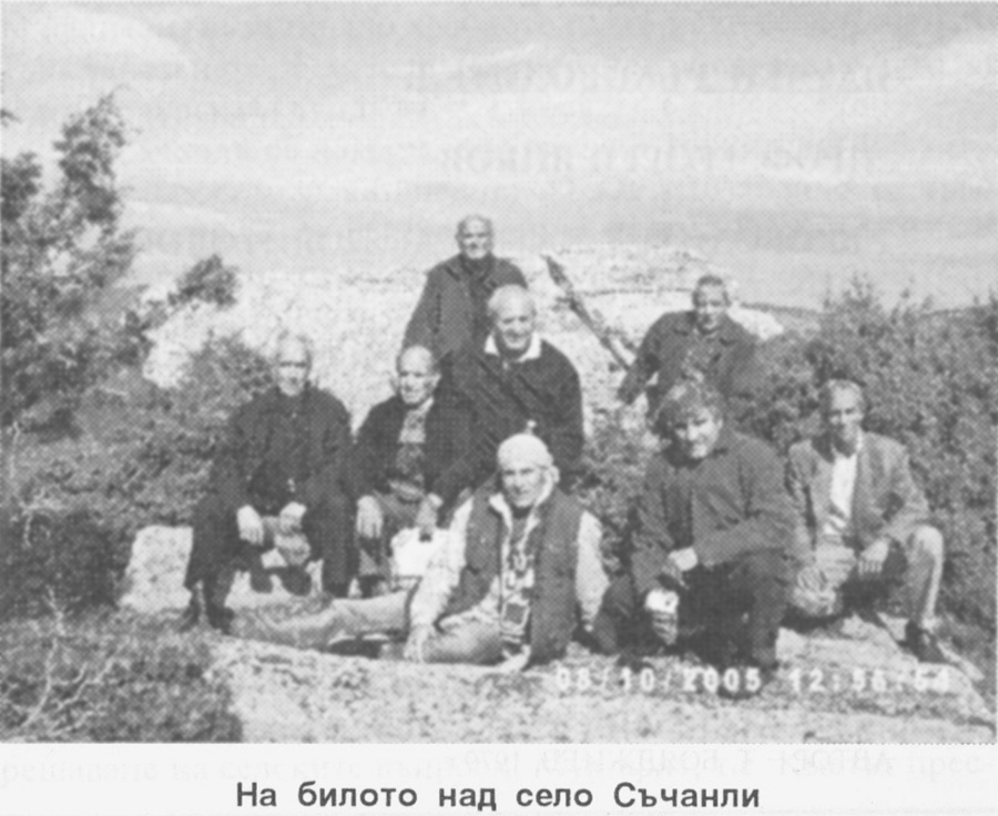 След кратката почивка пред вековния чинар в центъра на селото се отправихме към църквата, построена през 1844 г.. Макар че църквата е без покрив, стените й, дебели 1,10 м, са се запазили от разрухата на времето. Тук, пред олтара, дъщерята на д-р Илия Славков, автор на книгата за Съчанли, Емилия изнесе кратка лекция за историята на този край, след което групата се разпръсна да разглежда останките от някогашното село. Къщите, макар и порутени, оставят своя белег и до днес. В горната махала, на една от тях вкопана в земята, бяха запазени изцяло стените и огнището заедно с комина. Изкачихме се горе на височината над селото. Стъпихме на Калугеровия камък, от който се вижда цялата