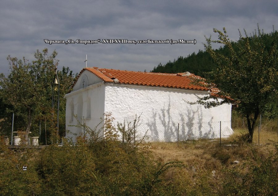 21. Черквата „Св. Спиридон“ - XVII-XVIII век, село Балъкьой (дн. Мелия)