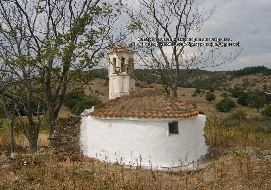 23. Олтарната част и камбанарията на черквата „Св. Димитър“ - 1850 г., село Урумджик (дн. Дорискос)
