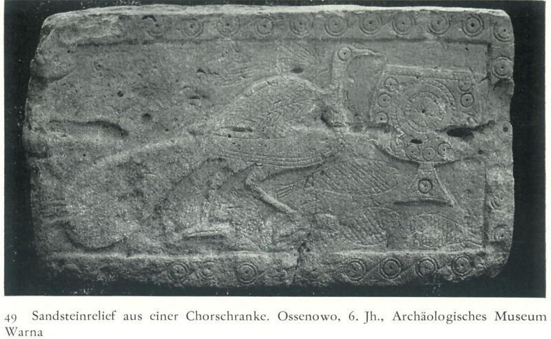 Parallel hierzu entwickelten aber einige Werkstätten im Balkaninneren eine gegenüber dem Drang zur Perfektion und Entkörperlichung der hauptstädtischen Kunst gegenläufige Tendenz. Es handelt sich dabei besonders um Tierdarstellungen - wie bei den Kämpfern und Kapitellen von Ljutibrod und an den Reliefplatten von Ossenowo. Es bestehen keinerlei Verbindungen zwischen diesen derben und primitiven Darstellungen, wo das Sinnbildliche durch das Phantastisch-Erzählerische verdrängt wird, und den Darstellungen an den zeitgenössischen Kapitellen von Thessalonike und Konstantinopel, die vom Geist der hellenistischen Antike geprägt sind und das Endstadium einer langen Entwicklung widerspiegeln. Die Figuren aus Ljutibrod und Ossenowo wurzeln in der volkstümlichen vorchristlichen Tradition. Diese überaus zählebige Stilrichtung ist jedoch nur an Bauwerken entlegener Ortschaften zu beobachten,