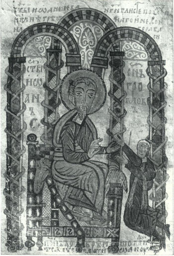 115 Evangelist Johannes mit dem Priester Dobrejscho. Miniatur aus dem Dobrejscho- Evangeliar, um 1220