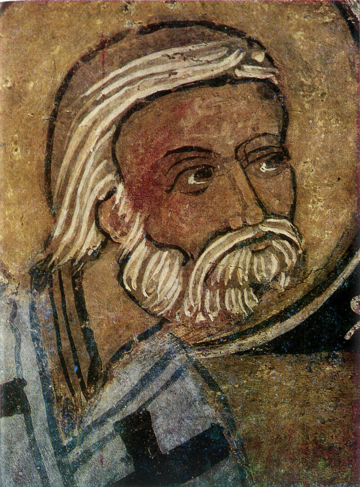 96 Heiliger Petrus von Alexandrien. Fresko in der Nikolaoskirche in Mariza, Südwestbulgarien, Ende 16. Jh.