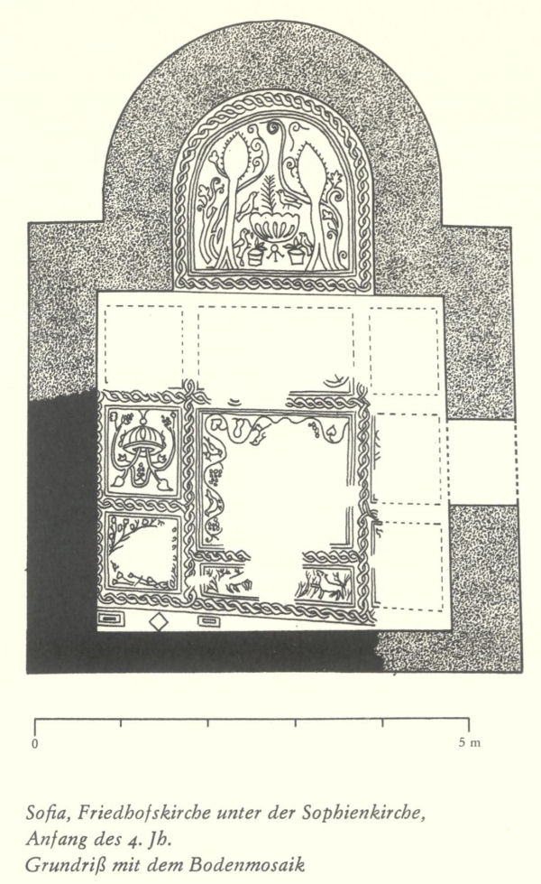 o Sofia, Friedhofskirche unter der Sophienkirche, Anfang des 4. Jh. Grundriß mit dem Bodenmosaik 21