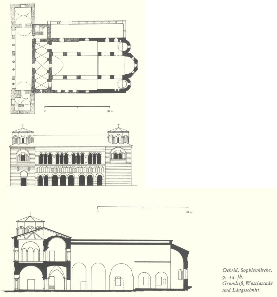 o Ochrid, Sophienkirche, 9.-14 Jh. Grundriß, Westfassade und Längsschnitt 30