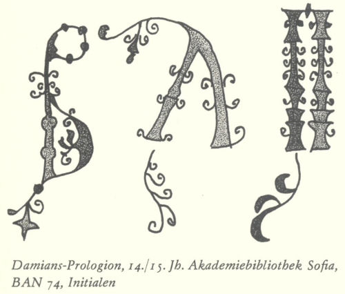 Damians-Prologion, 14./15.Jh. Akademiebibliothek Sofia, BAN 14, Initialen