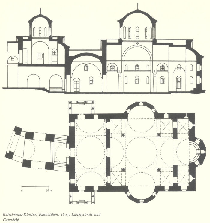 o Batschkovo-Kloster, Katholikon, 1603. Längsschnitt und Grundriß 74