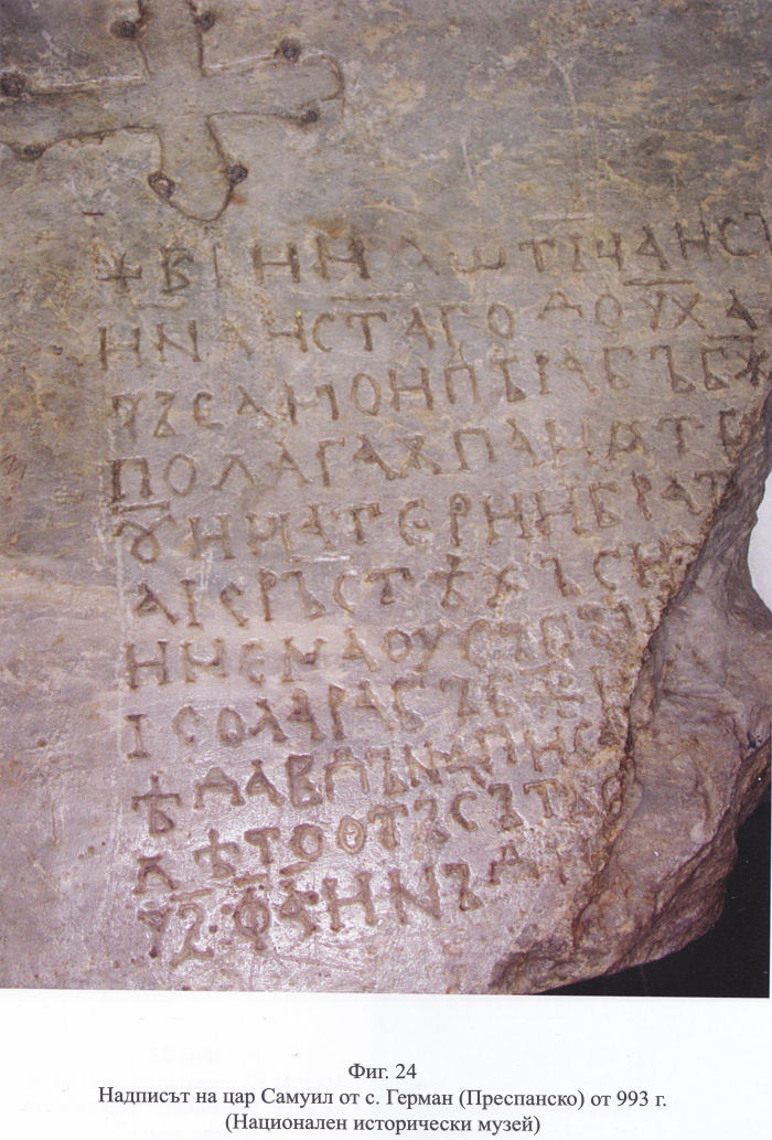 Фиг. 24. Надписът на цар Самуил от с. Герман (Преспанско) от 993 г. (Национален исторически музей)