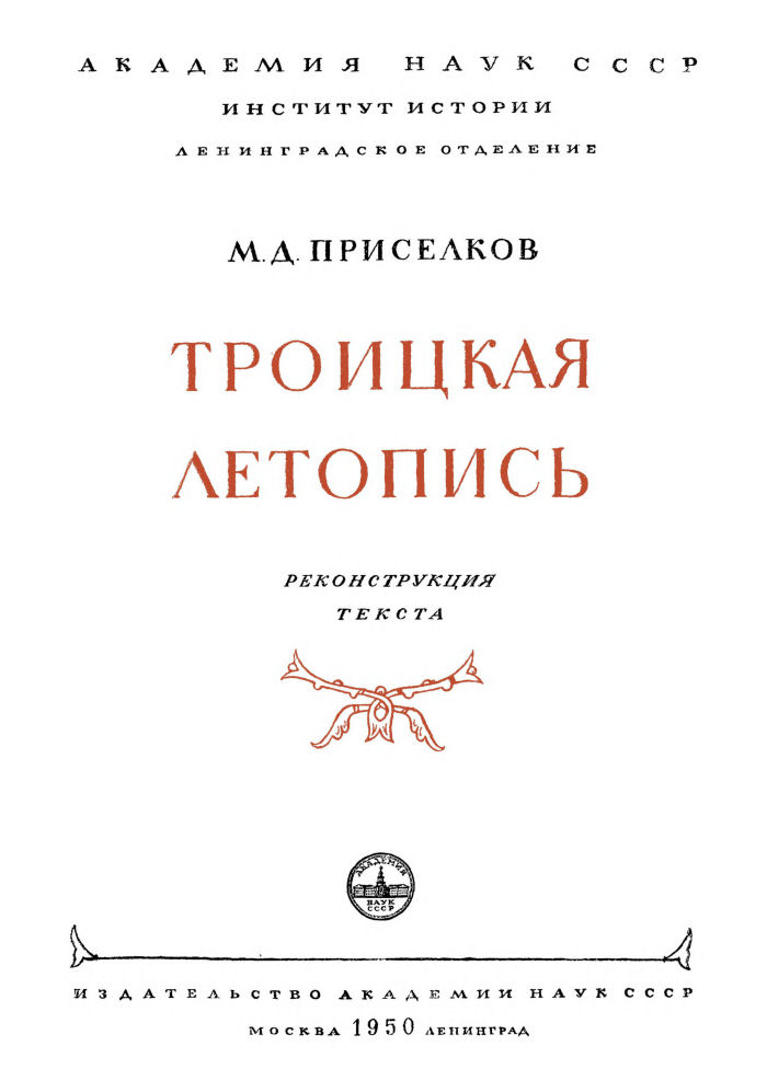 [ Това е пълният текст на "реконструирания" Троицки летопис в пълен текст + предговор от Приселков, който трябва да узакони фалшификата, изготвен специално за Карамзин. А статията на Леонид показва, че в Троицката Лавра никога не е имало старинен летописен ръкопис. При своето изследване Приселков открива, че мнимият пергаментов "Троицки" летопис е почти напълно идентичен с късен хартиен "Симеонов" летопис, съставен не по-рано от 15 век. Така че всички данни за старата история, които Карамзин предлага в своя огромен труд, (се) базират на изготвени в царските скриптории по време на Иван Грозни и не могат да бъдат считани за автентични.]