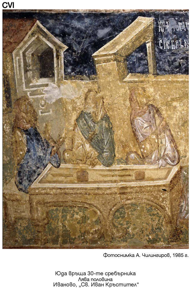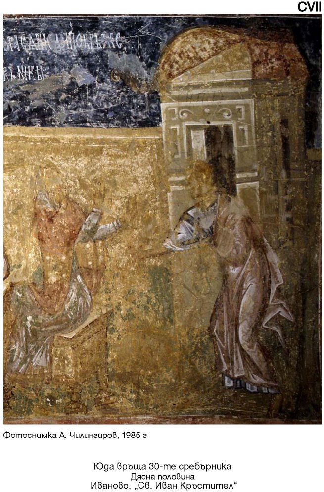CV. Юда връща 30-те сребърника. Иваново, „Св. Иван Кръстител“. Фотоснимка А. Чилингиров, 1985 г.