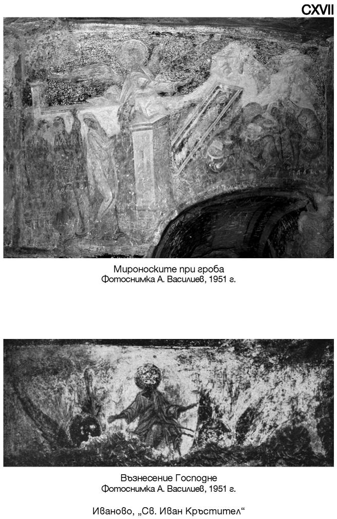 CXVII. Мироноските при гроба. Иваново, „Св. Иван Кръстител“. Фотоснимка А. Василиев, 1951 г. / Възнесение Господне. Фотоснимка А. Василиев, 1951 г.