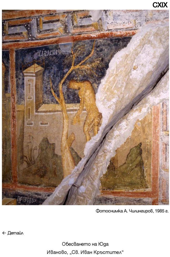 CXIX. Обесването на Юда. Иваново, „Св. Иван Кръстител“. Фотоснимка A. Чилингиров, 1985 г.