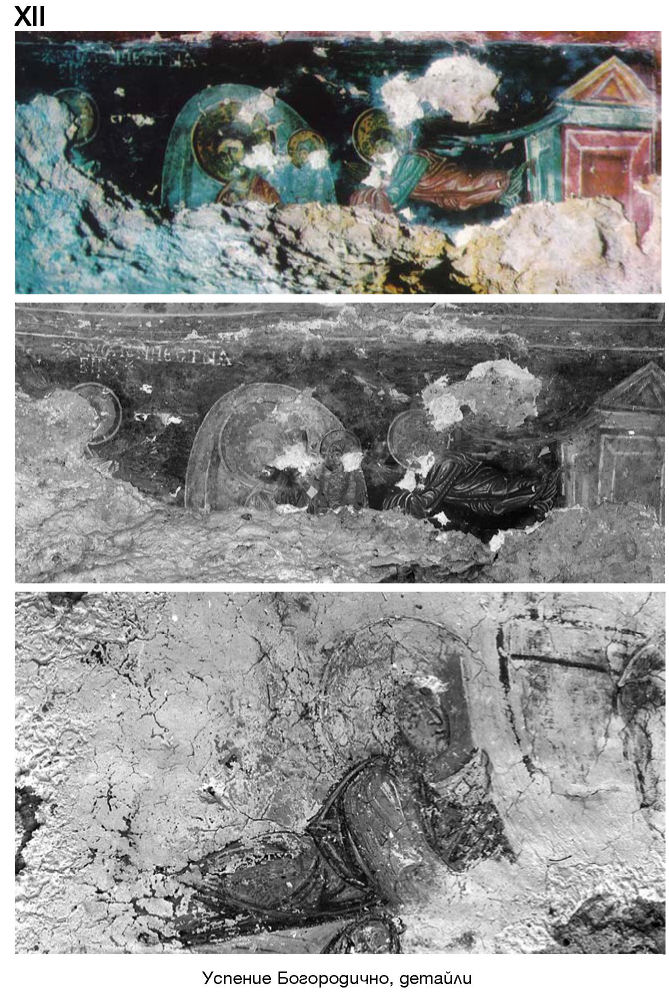 XII. Успение Богородично, детайли. Стенописни фрагменти. Фотоснимки А. Чилингиров