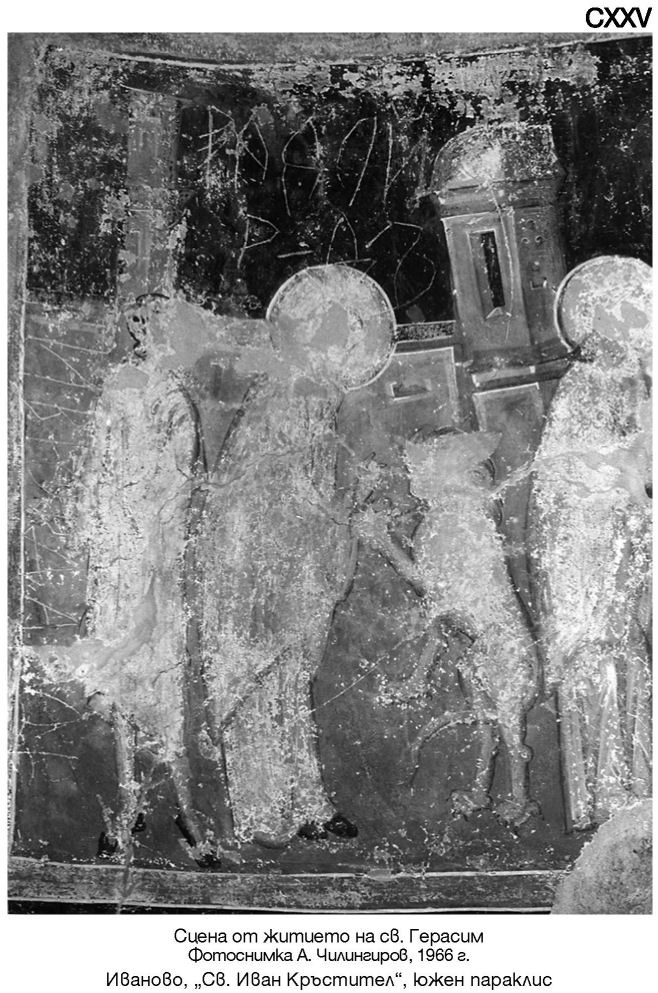 CXXV. Сцена от житието на св. Герасим. Иваново, „Св. Иван Кръстител“, южен параклис. Фотоснимка А. Чилингиров, 1966 г.