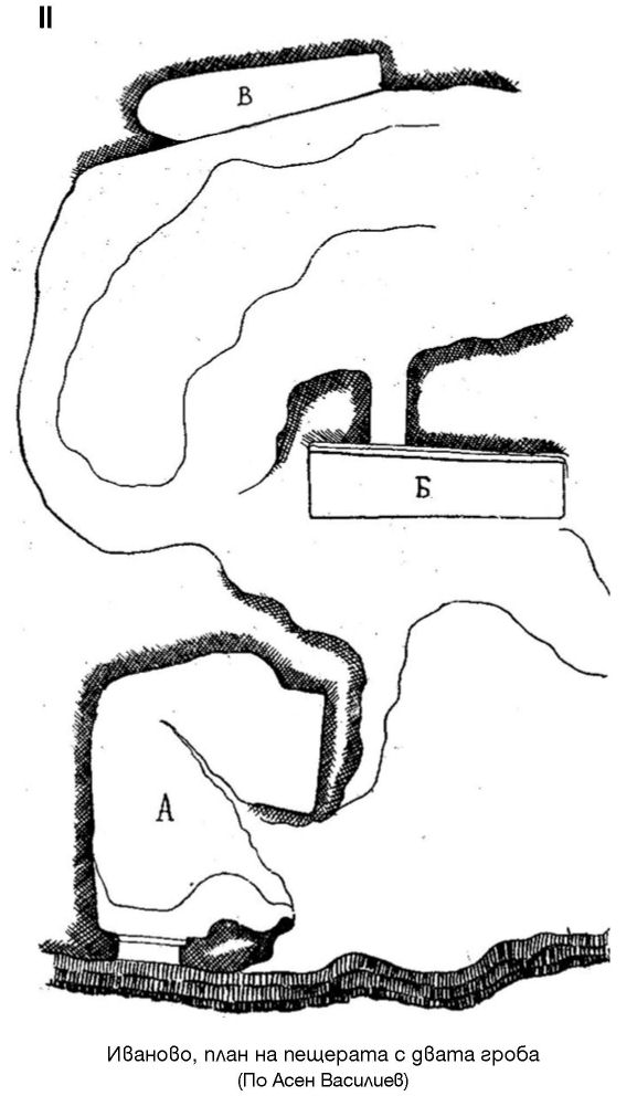 II. Иваново, план на пещерата с двата гроба (По Асен Василиев)