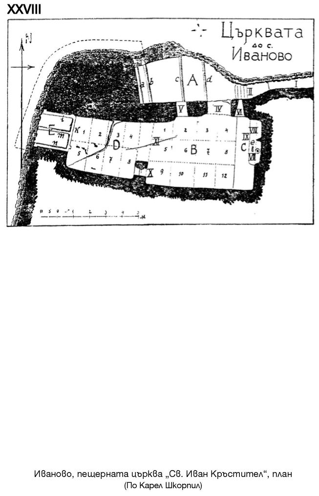 XXVIII. Иваново, пещерната църква „Св. Иван Кръстител“, план (По Карел Шкорпил)