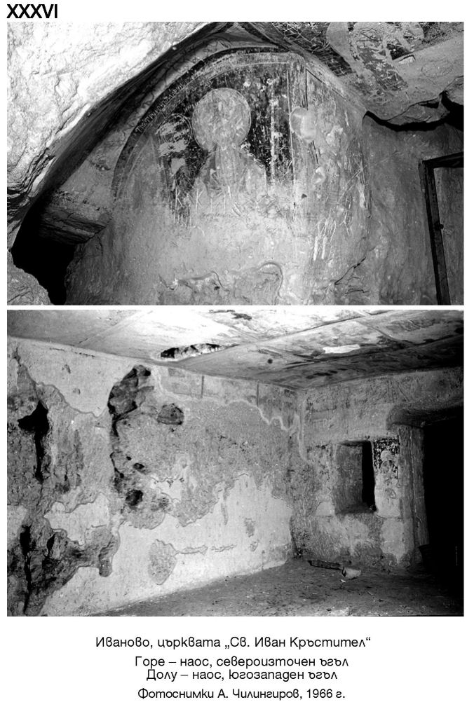 XXXVI. Иваново, църквата „Св. Иван Кръстител“. Горе - наос, североизточен ъгъл. Долу - наос, югозападен ъгъл. Фотоснимки А. Чилингиров, 1966 г.