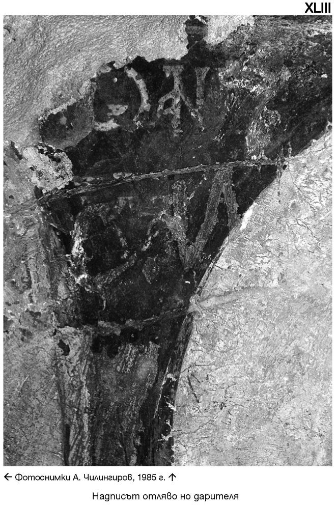 XLIII. Надписът отляво на дарителя. Фотоснимки A. Чилингиров, 1985 г.