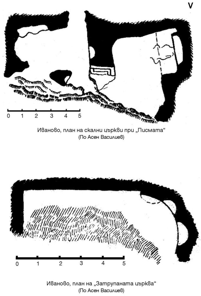 V. Иваново, план на скални църкви при „Писмата“ (По Асен Василиев) / Иваново, план на „Затрупаната църква“ (По Асен Василиев)