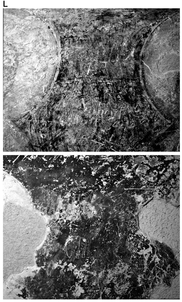 L. Фрагменти от стенописи c изображения на светци, Иваново, „Св. Иван Кръстител“, наос. Фотоснимки А. Чилингиров, 1985 г.