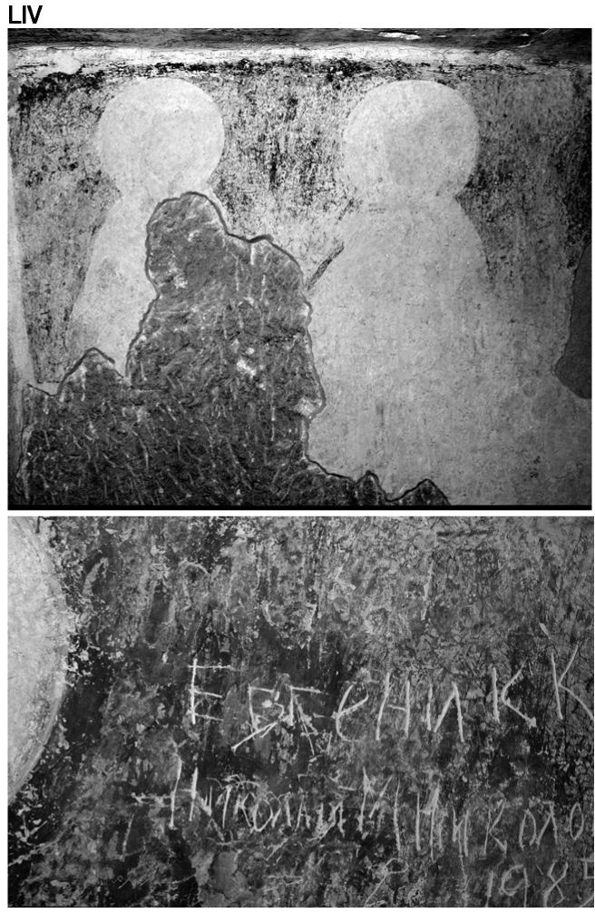 LIV. Фрагменти от стенописи. Наос. Фотоснимки А. Чилингиров, 1986 г.