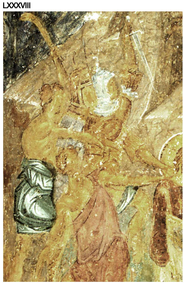 CXXIII. Южен параклис. Стенописни фрагменти. Фотоснимка A. Чилингиров, 1985 г.