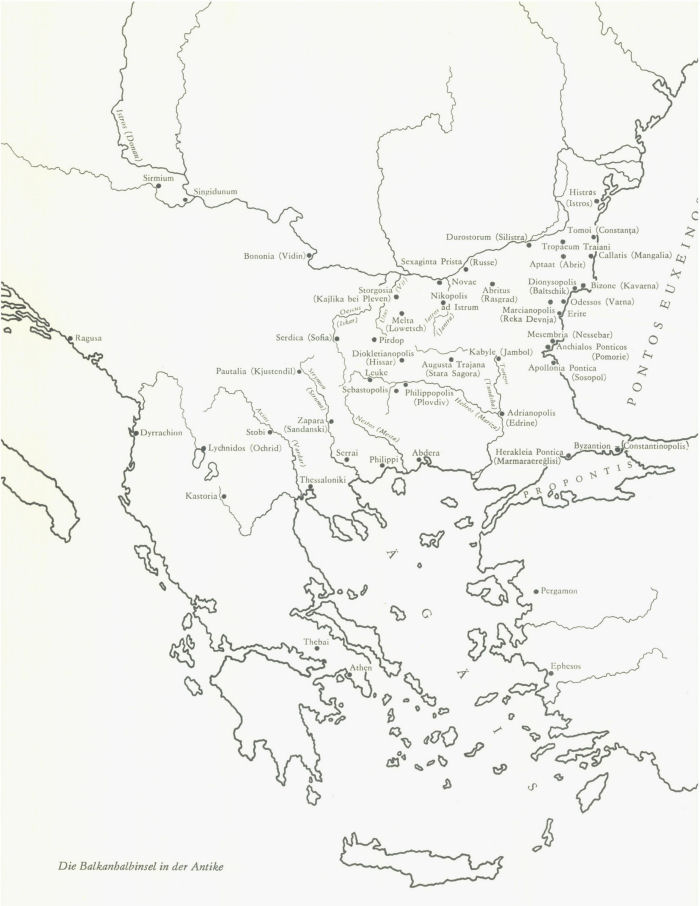 Die gewaltige Ausdehnung des Imperium Romanum um die Zeitenwende führte auch zur Eingliederung der letzten von thrakischen Volksstämmen besiedelten Gebiete auf der Balkanhalbinsel (Anm. 1). Nachdem im Jahre 148 v. Chr. auf den Trümmern des einst ruhmvollen Reichs Philipps II. und Alexanders des Großen die Provinz Macedonia gegründet worden war, folgten um die Jahre 15 und 46 n. Chr. die Provinzen Moesia und Thracia zu beiden Seiten des Balkangebirges, die letzten diesseits des Limes - der Staatsgrenze, die für mehrere Jahrhunderte die römische Zivilisation von den Barbaren der »unzivilisierten« Welt trennen und als Symbol für die Macht des Imperiums dienen sollte.