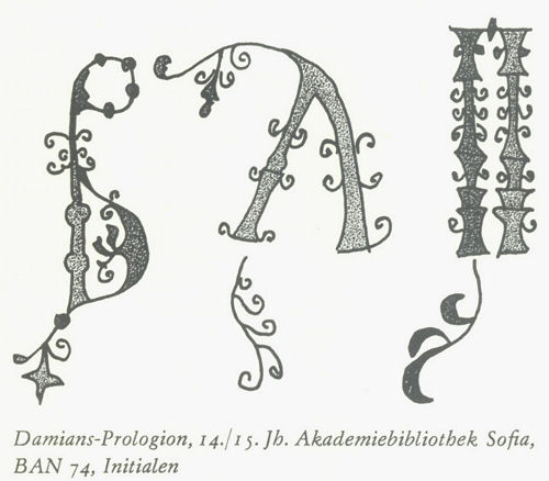 Damians-Prologion, 14./15. Jh. Akademiebibliothek Sofia, BAN 14, Initialen
