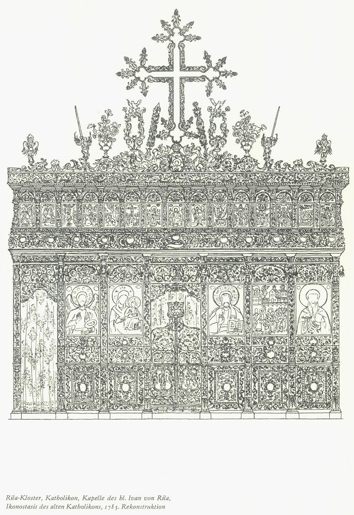 Unabhängig von Eklektizismus und Konservatismus, die die christlich-orthodoxe Kunst Bulgariens im 17. und 18. Jahrhundert weitgehend bestimmen, gelangte eine andere, in der voraufgegangenen Epoche etwas vernachlässigte und durch die glanzvolle Entfaltung der Malerei in den Schatten gestellte Gattung zu neuer Blüte, die während der Spätphase der mittelalterlichen kirchlichen Kunst noch einmal der schöpferischen Kraft des christlichen Glaubens Ausdruck gab und bedeutende künstlerische Leistungen vollbrachte: die Miniatur- und Monumentalholzschnitzerei. (Anm. 35)