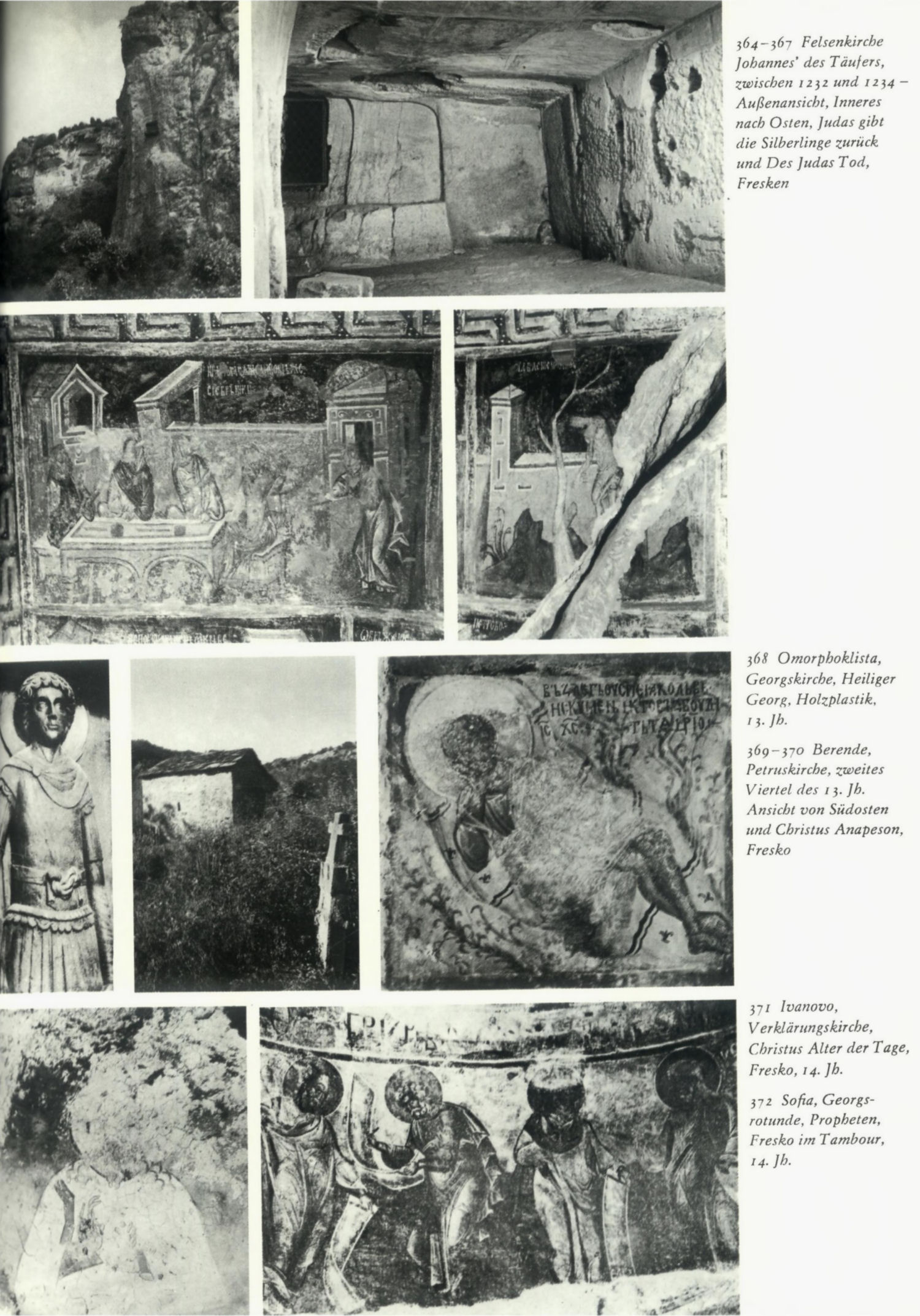 364-367 Felsenkirche ]ohannes’ des Täufers, zwischen 1232 und 1234- Außenansicht, Inneres nach Osten, Judas gibt die Silberlinge zurück und Des Judas Tod, Fresken