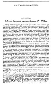 небольшом материале, все же имеет вполне определенный смысл и будет способствовать дальнейшему изучению как собственно Изборника Святослава, так и русских оригинальных сборников XV—XVII вв.