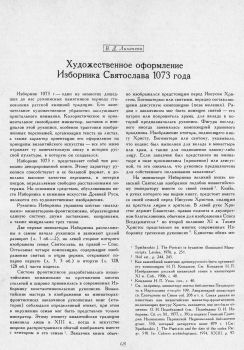 Изборник 1073 г.— один из немногих дошедших до нас рукописных памятников периода становления русской книжной традиции. Его замечательное художественное убранство заслуживает пристального внимания. Колористическое и орнаментальное своеобразие миниатюр, заставок и инициалов этой рукописи, особенно трактовки изображенных персонажей, организация текста на листах, а также характер ориентации его оформления на принципы византийского искусства — все это живо отражает ту замечательную эпоху в истории русской культуры, в которую он создавался.