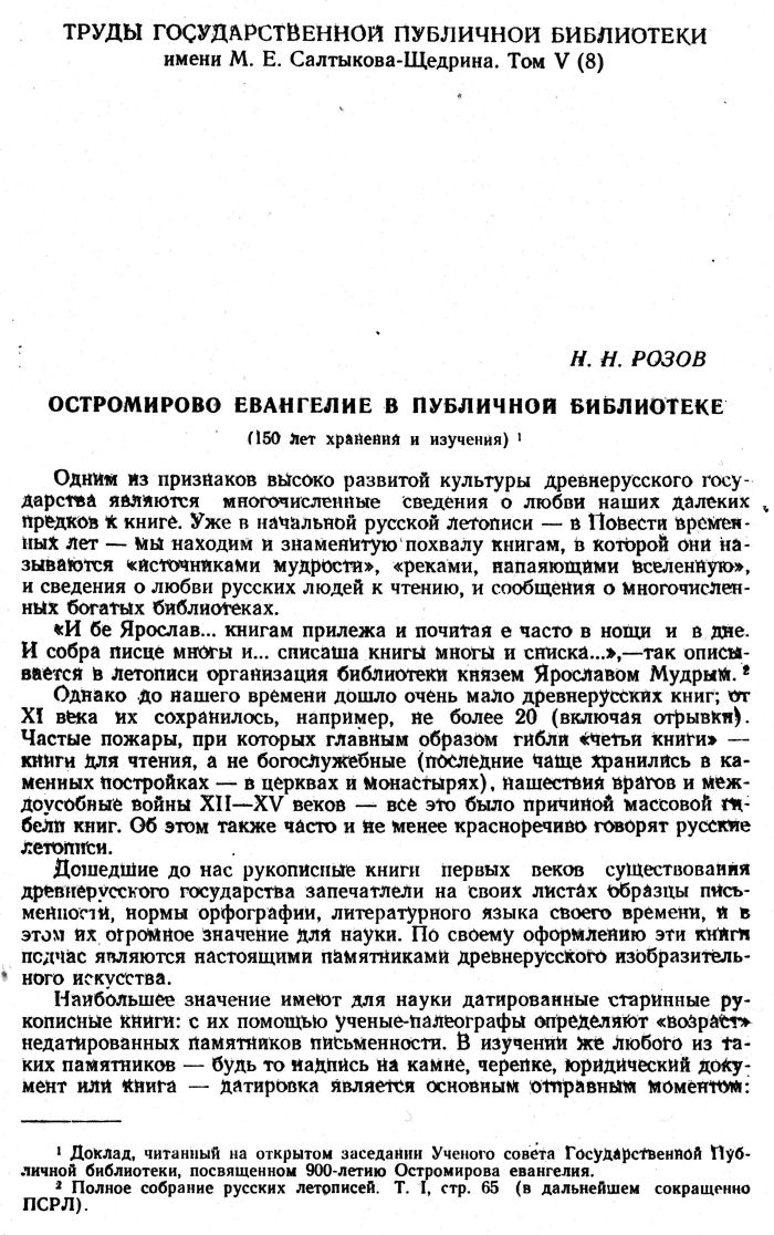 1. Доклад, читанный на открытом заседании Ученого совета Государственной Публичной библиотеки, посвященном 900-летию Остромирова евангелия.