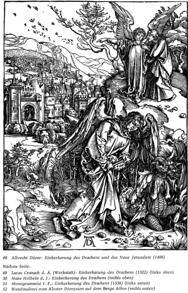 48. Albrecht Dürer: Einkerkerung des Drachens und das Neue Jerusalem (1498)