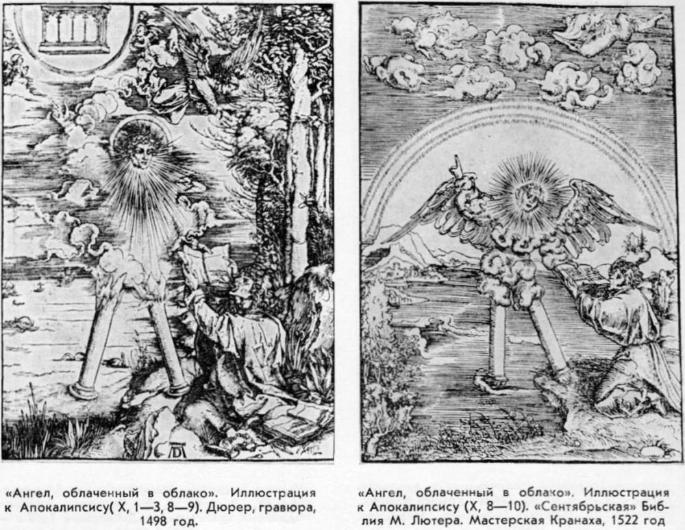 «Ангел, облаченный в облако». Иллюстрация к Апокалипсису (X, 8—10). «Сентябрьская» Библия М. Лютера. Мастерская Кранаха, 1522 год