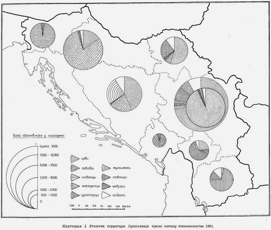 Картограм I. Етничка структура Југославије према попису становништва 1961. год.