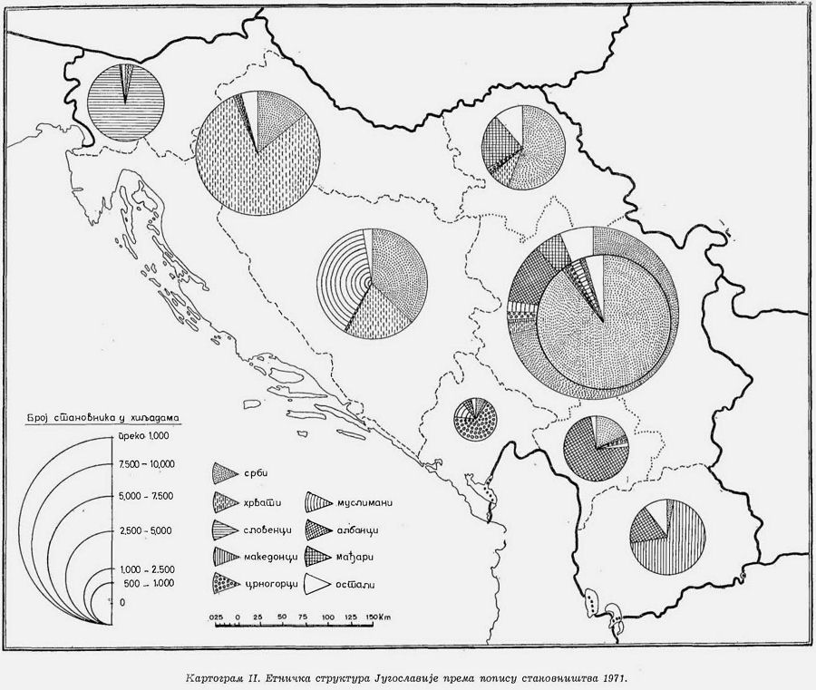 Картограм II. Етничка структура Југославије према попису становништва 1971. год.