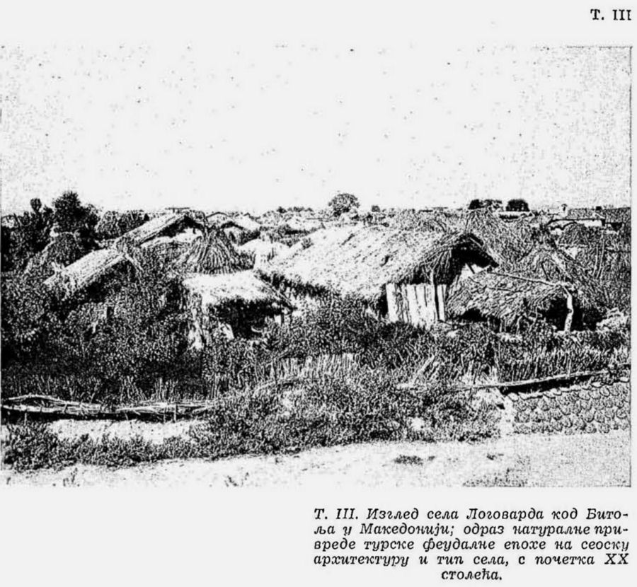 Pl. III. Aspect du village de Logovarda près de Bitolj en Macédoine; réfléchissement de l’économie naturelle de l’époque féodale turque sur l'architecture rurale et e type du village commencement du XXe siècle;