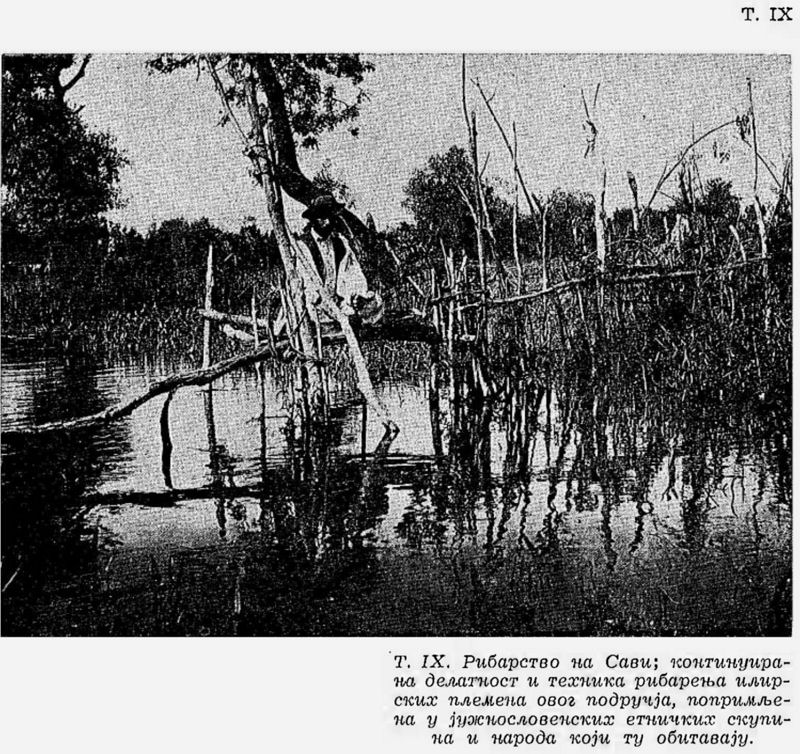 Pl. IX. Pêche sur la Save; activité économique et technique de la pêche, pratiquées autrefois par les tribus illyriennes habitant ce territoire, adoptées par les groupes ethniques et peuples sud-slaves qui habitent là à présent;