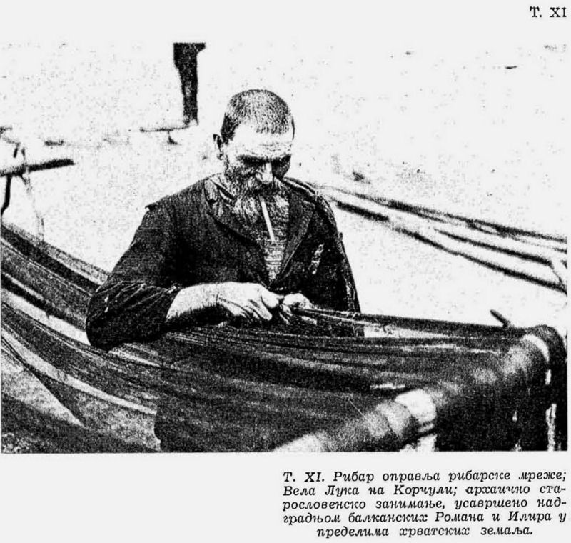 T. XI. Рибар оправља рибарске мреже на Корчули, с почетка XX столећа;